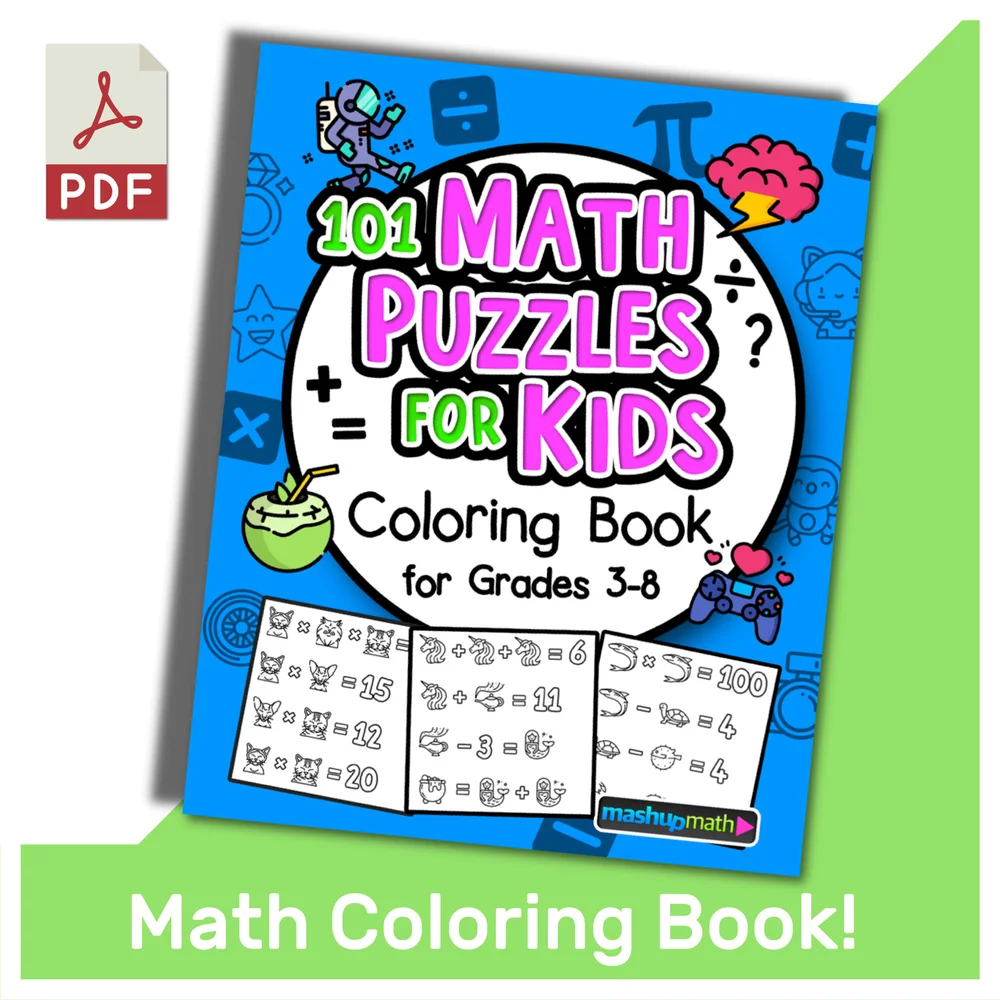101 Math Coloring Worksheets Coloring Book For Grades 3 8 Mashup Math